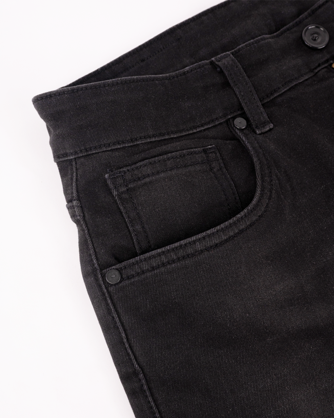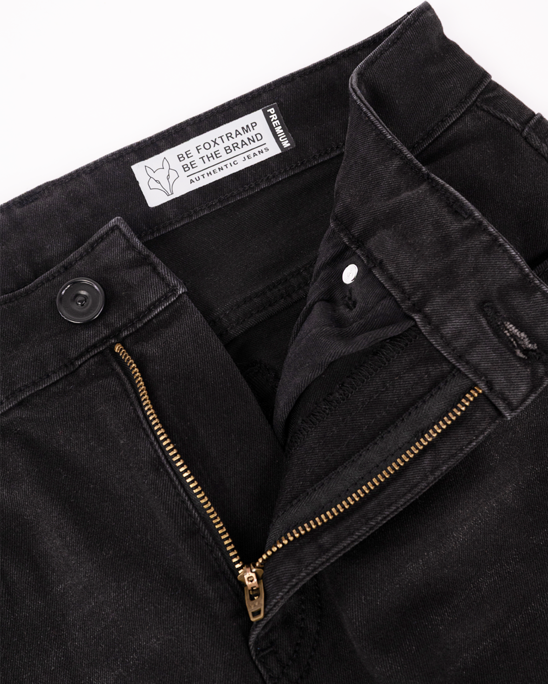 Foxtramp Men's Premium Denim Tapered Fit Rinse Black Jeans