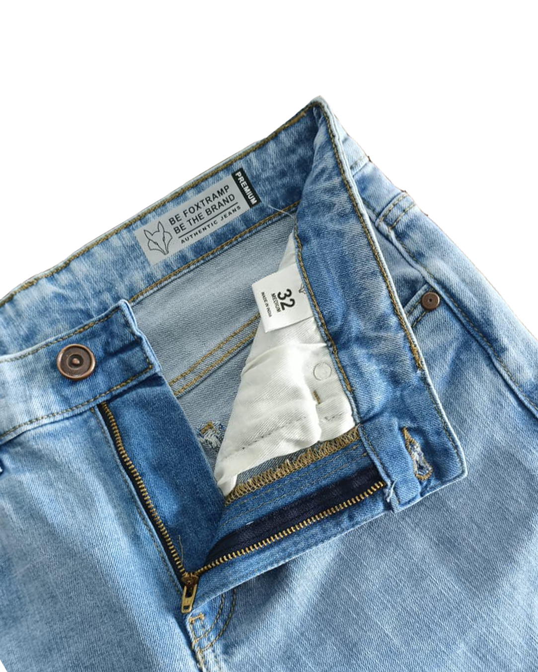 Foxtramp Men's Premium Denim Tapered Fit Lite Blue Jeans