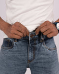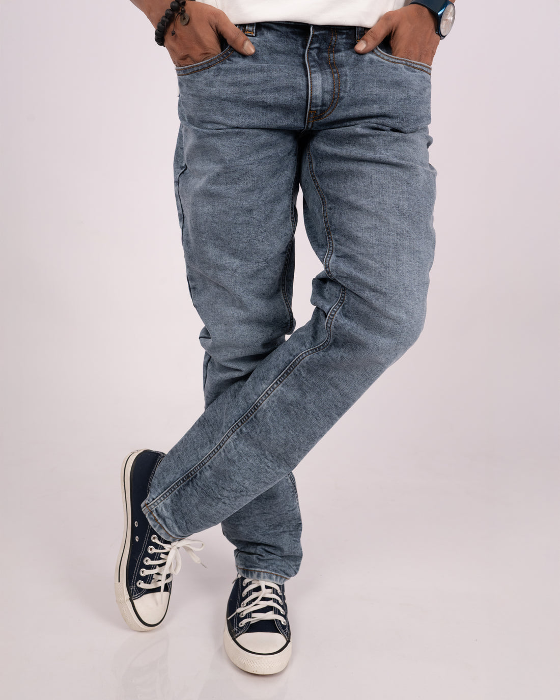 Bluish Grey Wash-Foxtramp Tapered Fit Pure Denim Jeans